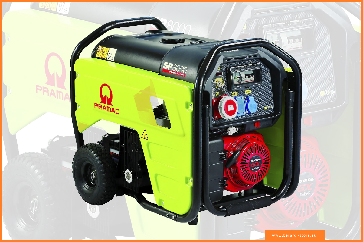 I generatori Pramac si distinguono per la loro versatilità nell’impiego professionale, sono completi di tutto ma allo stesso tempo sono razionalmente semplici, ordinati, essenziali. Si parla pertanto di prodotti “logici”, “ragionati”. Ogni organo è al suo posto, dove funziona meglio, dove si utilizza meglio, dove si ripara meglio. Le carene di protezione lasciano facilmente spazio ad ogni accesso necessario alla manutenzione, tutto ciò che occorre è a portata di mano e disponibile in modo ordinato. Le strutture di protezione (tipo roll-bar) li riparano da urti e ribaltamenti accidentali. Sono già previsti per essere dotati di telaio carrellato per lo spostamento agevole.
